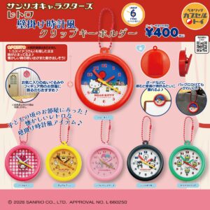サンリオキャラクターズ レトロ壁掛け時計風クリップキーホルダー