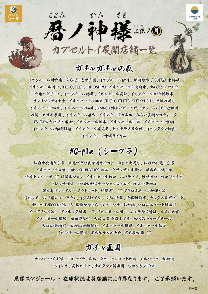| ガシャポンのデパート | イオンモール、アリオ、ヨドバシカメラ、ららぽーと、アリーナモールなどの大型商業施設 |