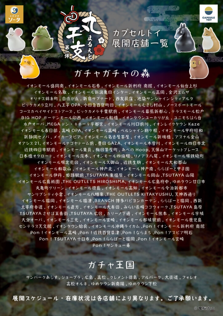 | ガシャポンのデパート | イオンモール、アリオ、ヨドバシカメラ、ららぽーと、アリーナモールなどの大型商業施設 |