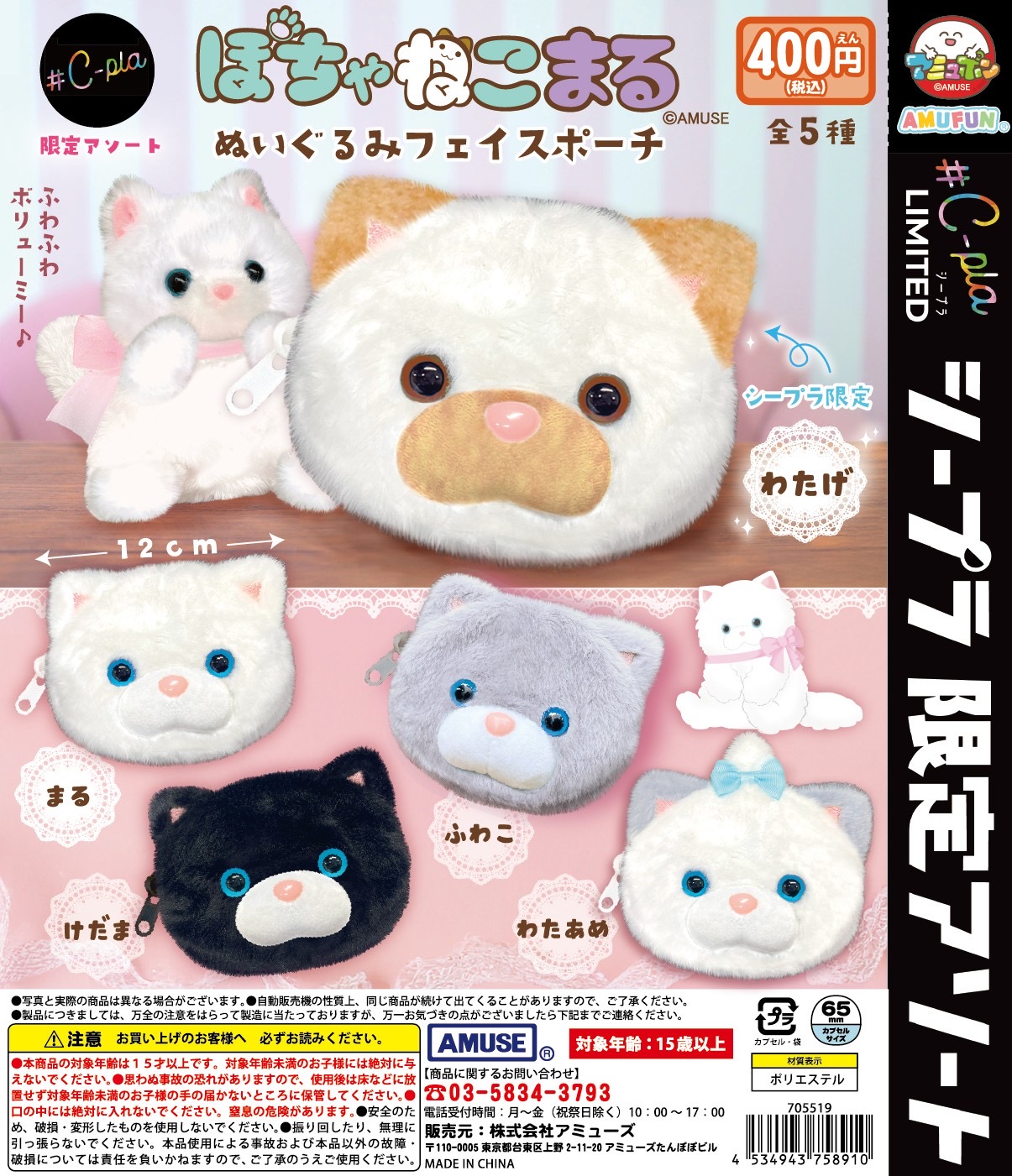 ふわっとしたかわいい猫、「ぽちゃねこまる」のフェイスポーチが登場!