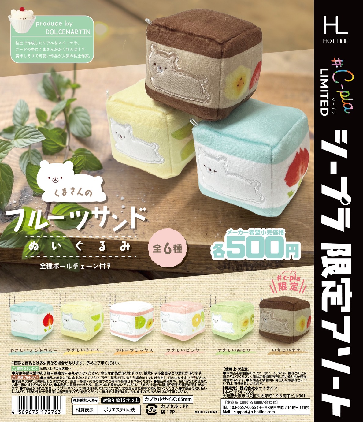 粘土作家DOLCEMARTINさん(@MARTIN_ron3)のくまさんフルーツサンドがぬいぐるみになって登場!