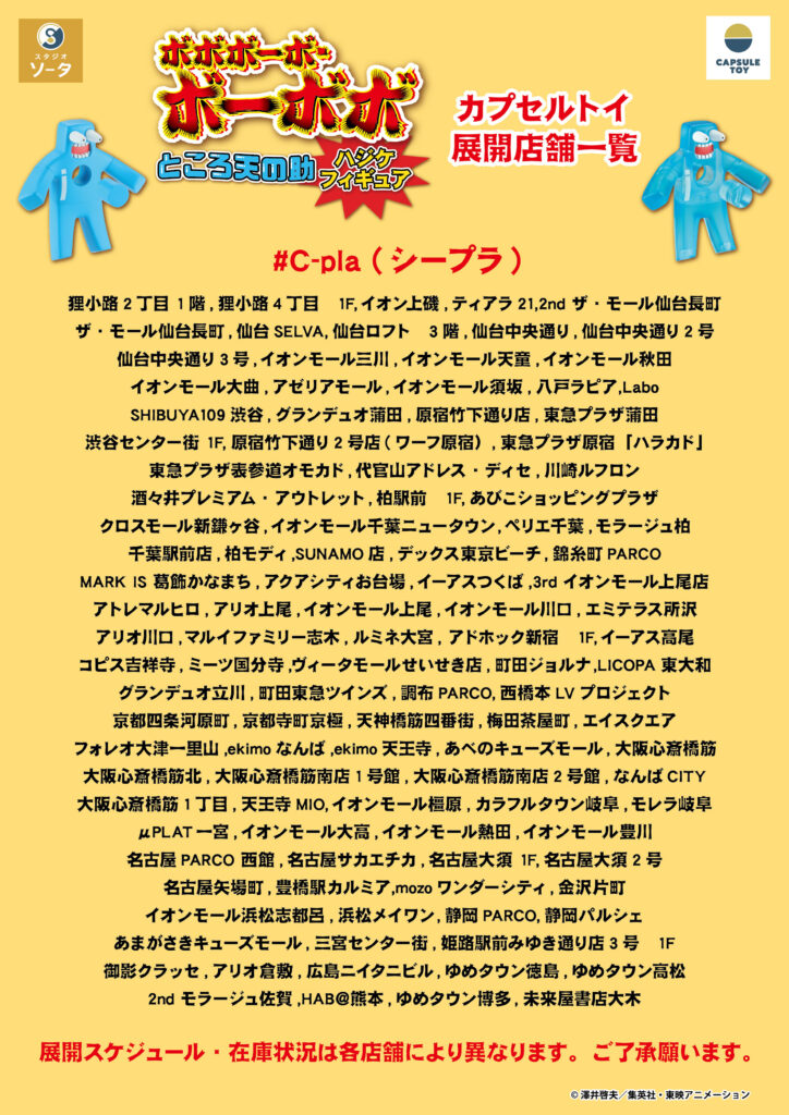 | トイズキャビン | C-pla、ヴィレッジヴァンガード、ロフト、ドン・キホーテ、ヨドバシカメラ、ビックカメラ、ジュンク堂、TSUTAYA、WonderGOO、namco、セガ、地域のホビーショップや中古ショップ など |