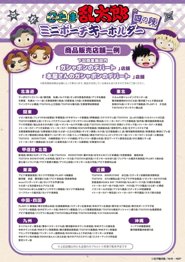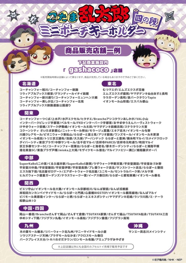 バンダイ(ガシャポン)イオンモール(ガシャポンのデパート)、ヨドバシカメラ、ビックカメラ、エディオン、JR駅構内、コンビニ、namco、ラウンドワン、タイトーステーション、トイザらス、ロフト、ドン・キホーテ、紀伊國屋書店、TSUTAYA など