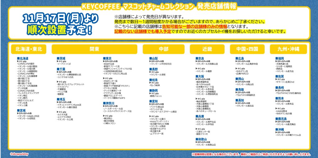 | ガチャガチャの森 | イオンモール、ららぽーと、アリオ、PARCO(パルコ)などの大型ショッピングセンター |