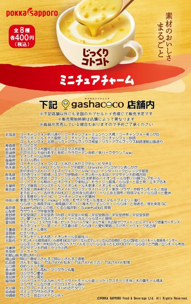 素材のおいしさが濃厚な、ポッカサッポロの大人気スープシリーズ、「じっくりコトコト」のミニチュアチャームが登場です!