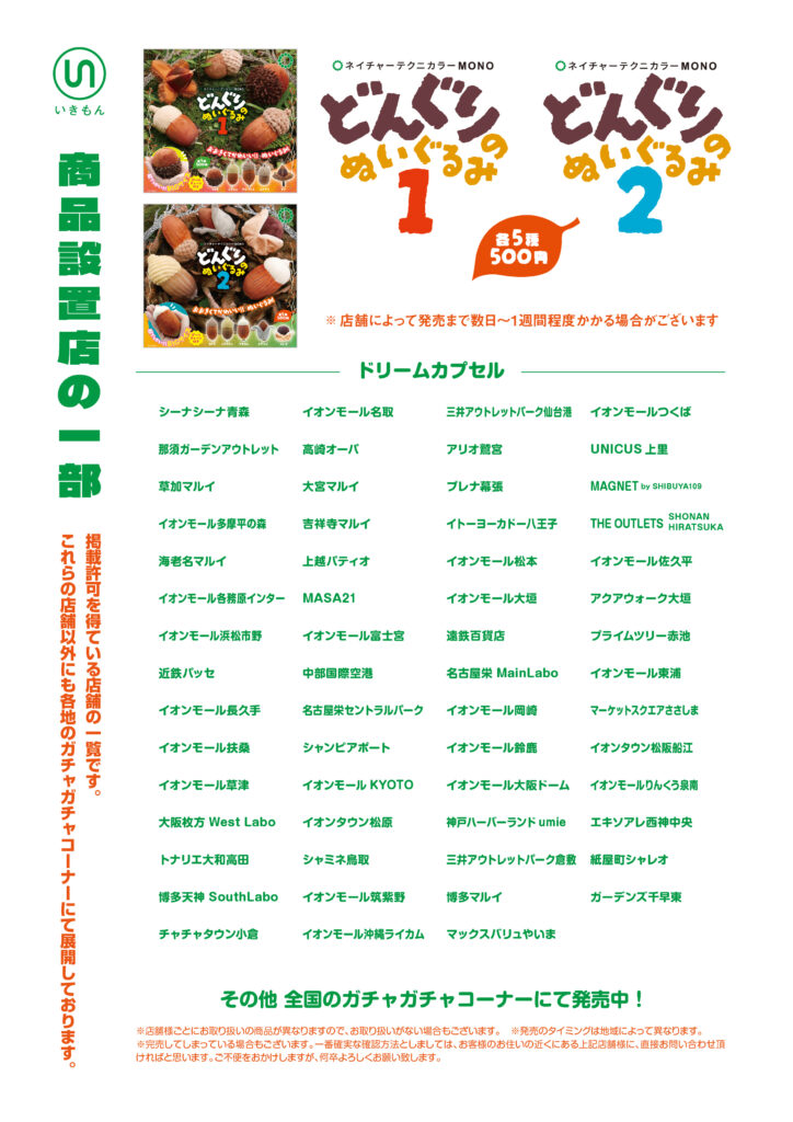 | ガシャポンのデパート | イオンモール、アリオ、ヨドバシカメラ、ららぽーと、アリーナモールなどの大型商業施設 |