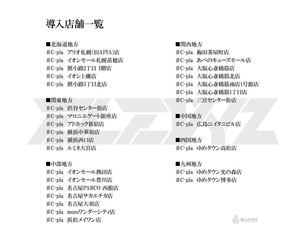 | #C-pla(シープラ) | イオンモール、アリオ、ゆめタウン、パルコ、商店街など |