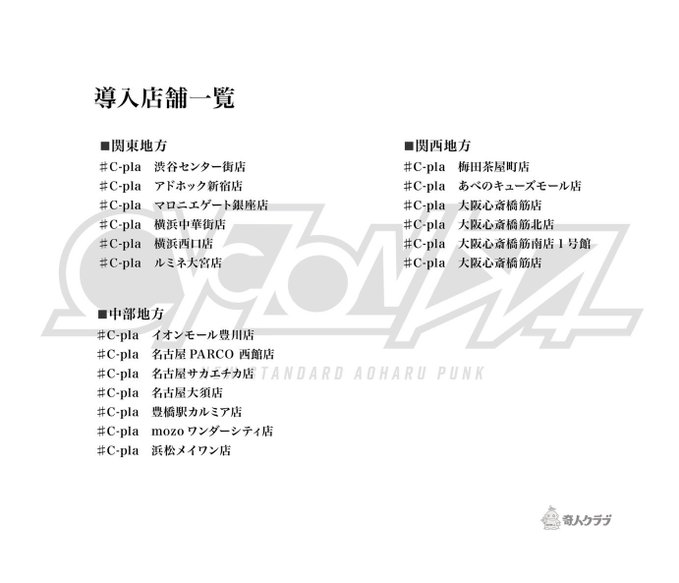 | #C-pla(シープラ) | イオンモール、アリオ、ゆめタウン、パルコ、商店街など |