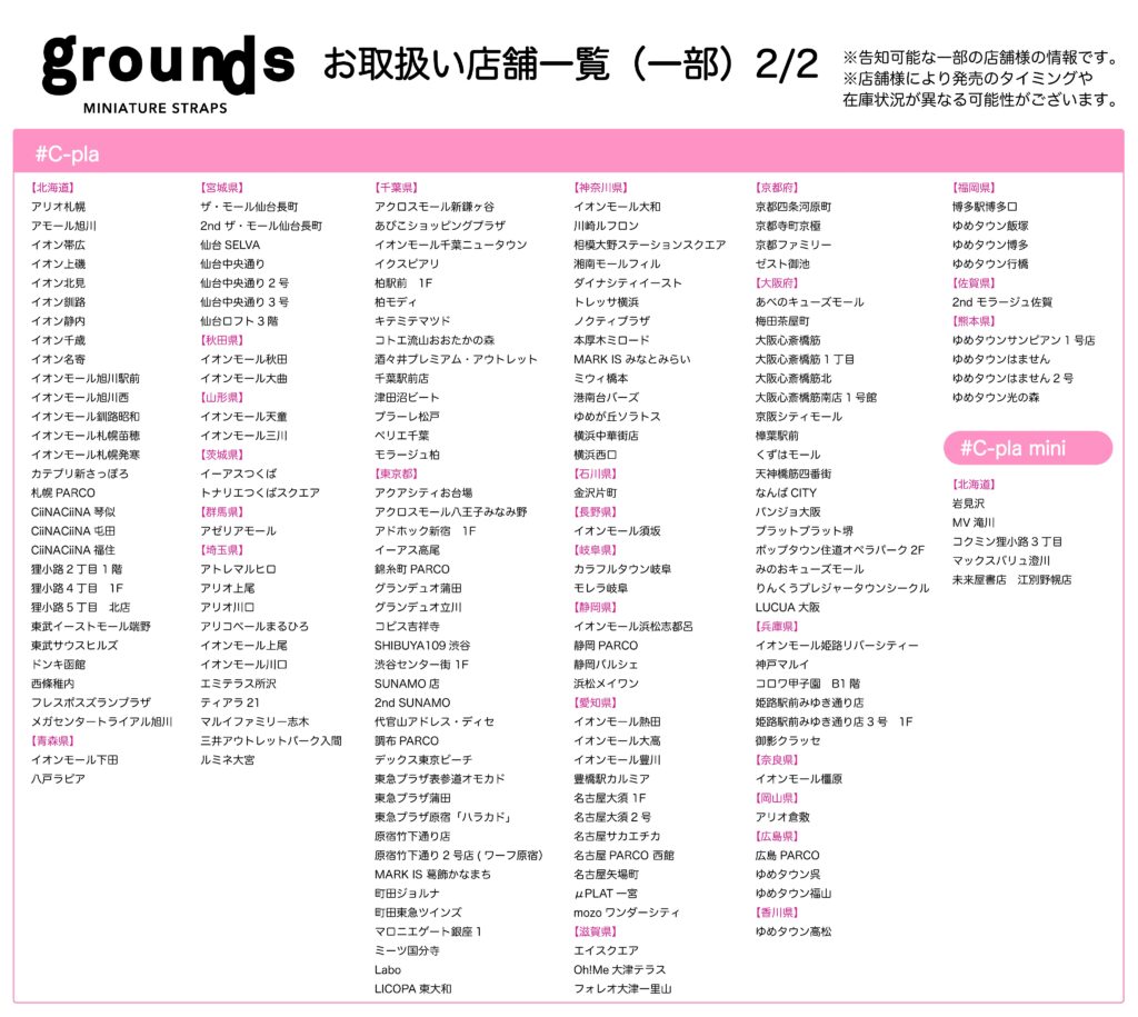 | #C-pla(シープラ) | イオンモール、アリオ、ゆめタウン、パルコ、商店街など |