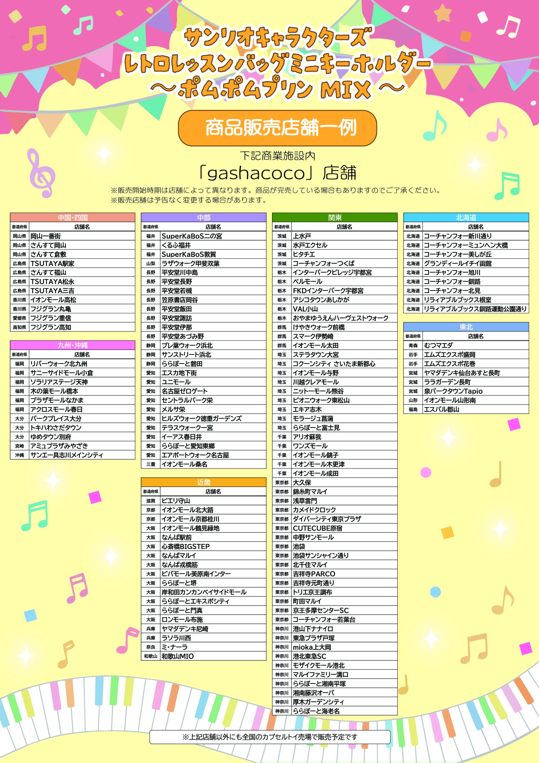 | gashacoco(ガシャココ) | イオンモール、ゆめタウン、ショッピングセンターなど |