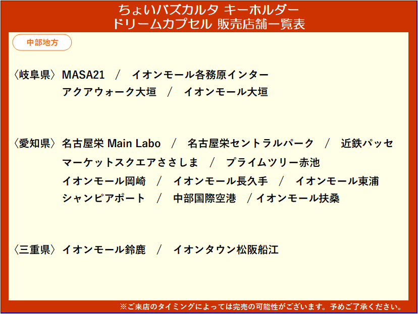 トイズキャビンC-pla、ヴィレッジヴァンガード、ロフト、ドン・キホーテ、ヨドバシカメラ、ビックカメラ、ジュンク堂、TSUTAYA、WonderGOO、namco、セガ、地域のホビーショップや中古ショップ など
