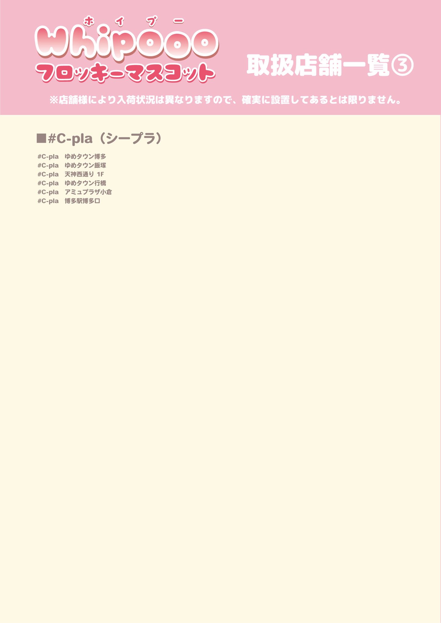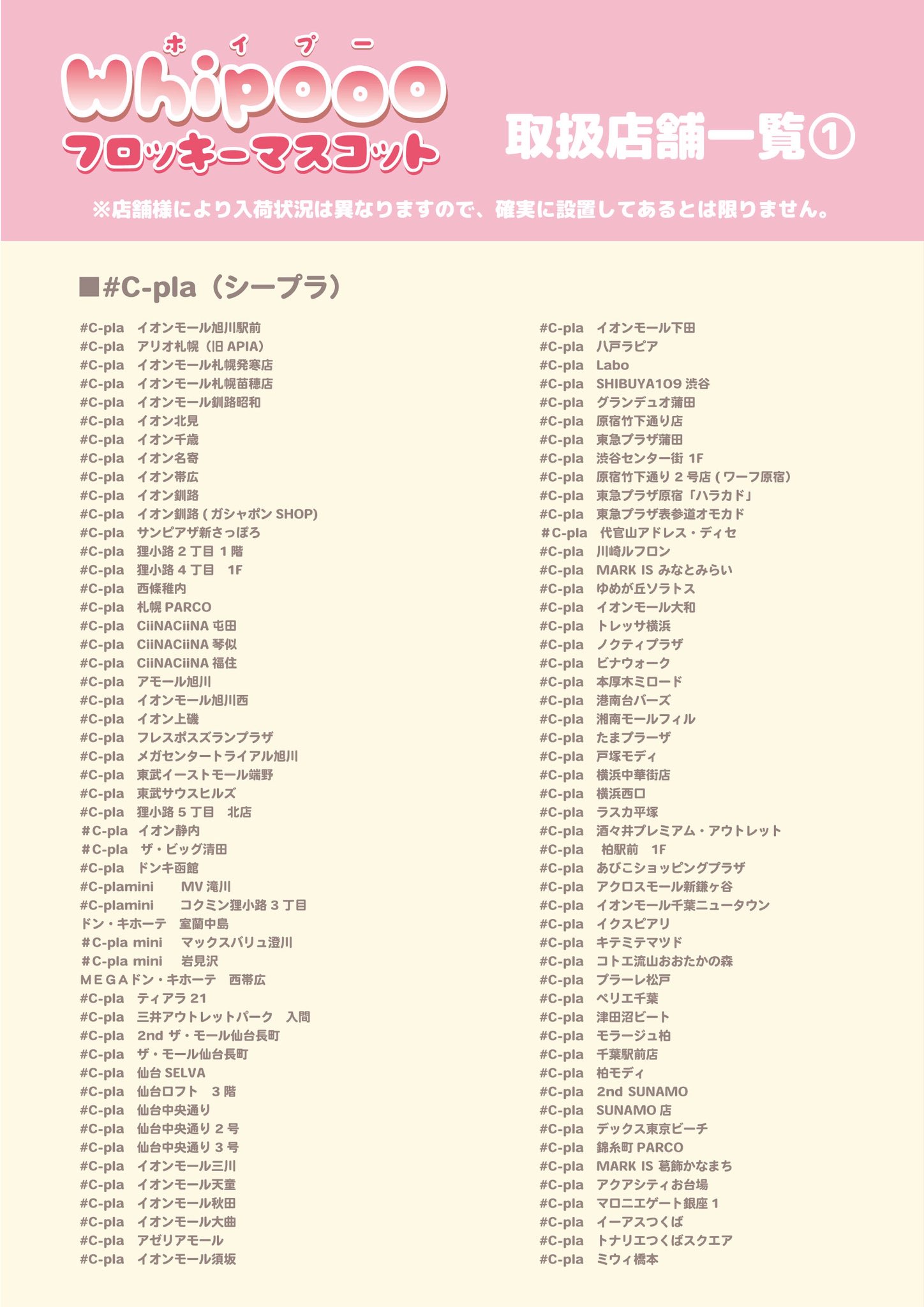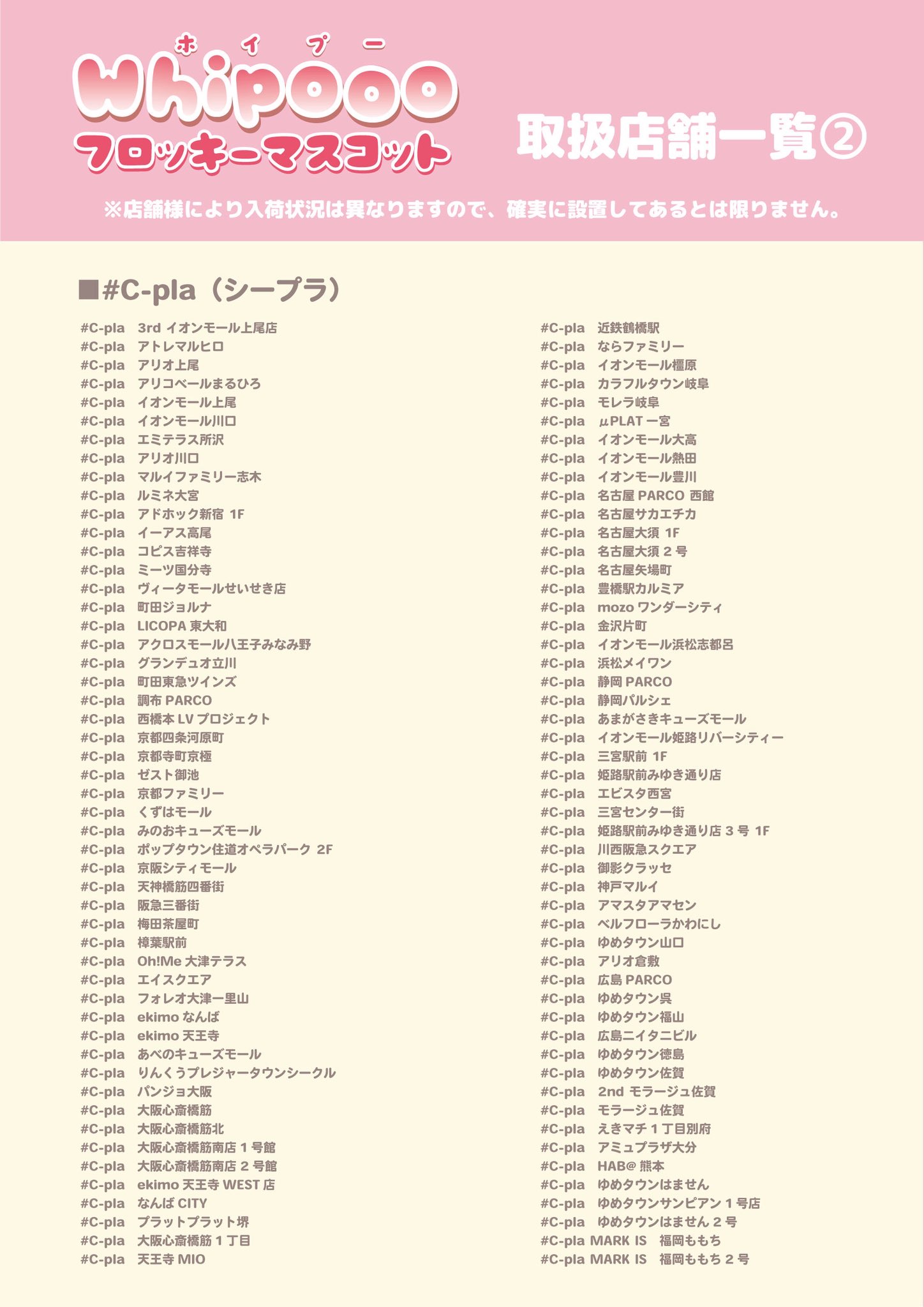 | #C-pla(シープラ) | イオンモール、アリオ、ゆめタウン、パルコ、商店街など |