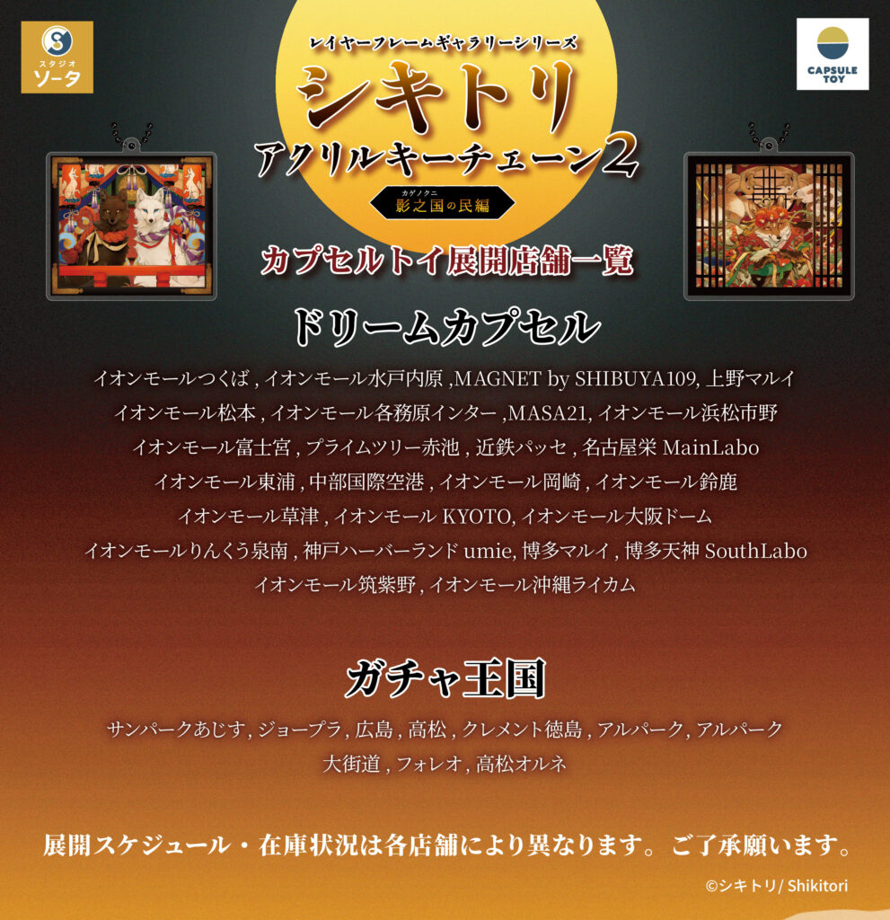 | ガシャポンのデパート | イオンモール、アリオ、ヨドバシカメラ、ららぽーと、アリーナモールなどの大型商業施設 |