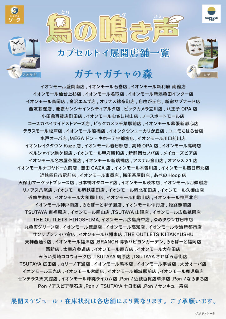 | ガチャガチャの森 | イオンモール、ららぽーと、アリオ、PARCO(パルコ)などの大型ショッピングセンター |