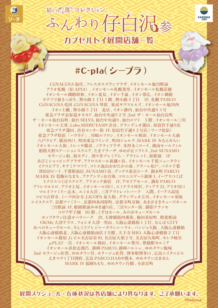 トイズキャビンC-pla、ヴィレッジヴァンガード、ロフト、ドン・キホーテ、ヨドバシカメラ、ビックカメラ、ジュンク堂、TSUTAYA、WonderGOO、namco、セガ、地域のホビーショップや中古ショップ など