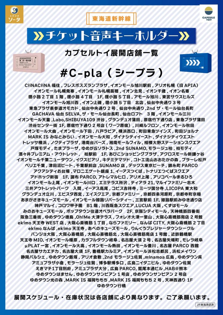 | トイズキャビン | C-pla、ヴィレッジヴァンガード、ロフト、ドン・キホーテ、ヨドバシカメラ、ビックカメラ、ジュンク堂、TSUTAYA、WonderGOO、namco、セガ、地域のホビーショップや中古ショップ など |